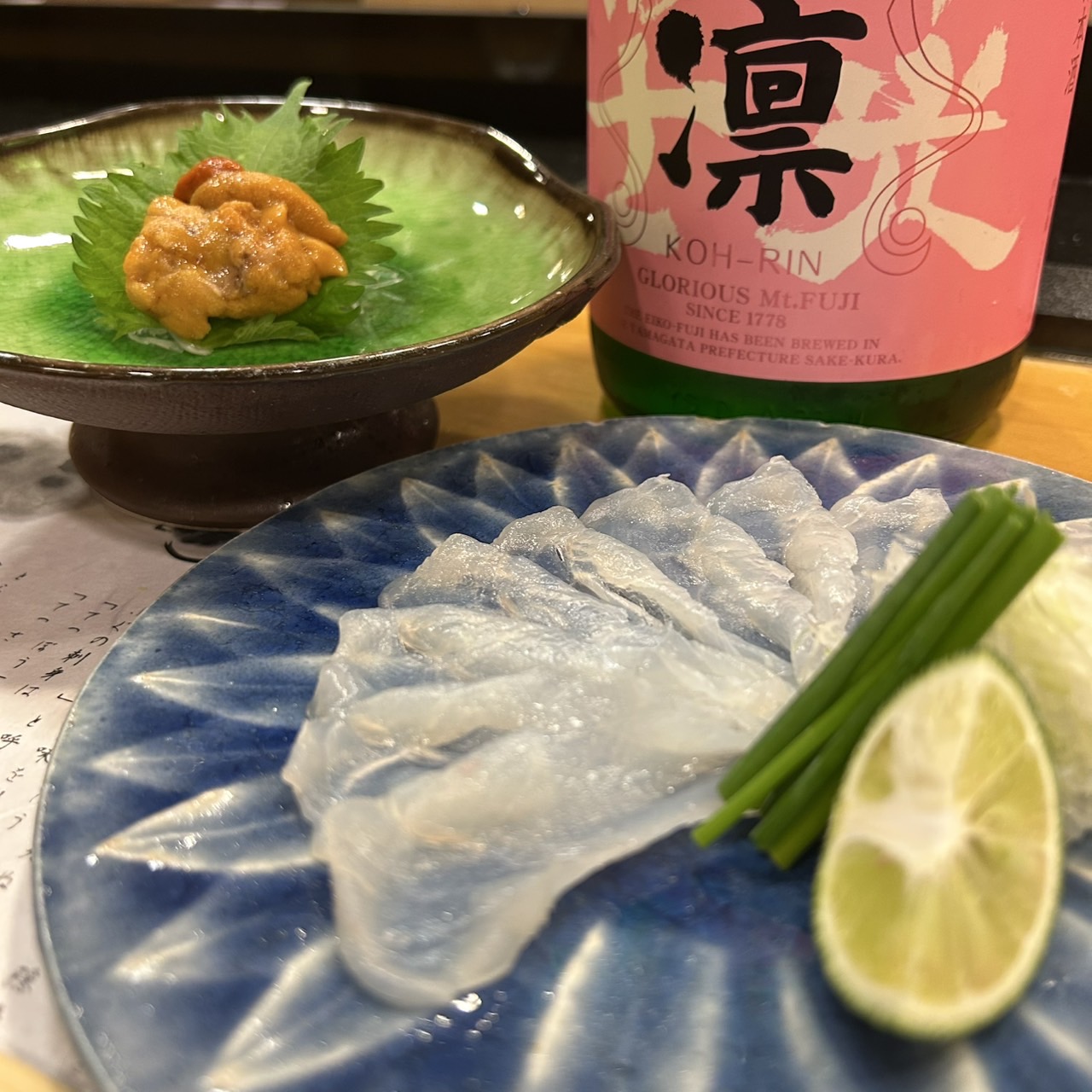 Specialty sashimi platter with "raw sea urchin" as a service.
