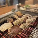 店内中央にある焼台で、朝穫れ新鮮な活貝や旬野菜など、豪快に焼き上げます!焼き立てで一番おいしいく食べられる状態でお客様にご提供させていただきます。