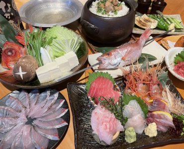 季節の食材と当店人気ののどぐろの塩焼きを組み合わせたコースです。その他赤字覚悟の名物刺身5点盛りや、海鮮のしゃぶしゃぶなどが揃う贅沢なメニューに仕上げています。