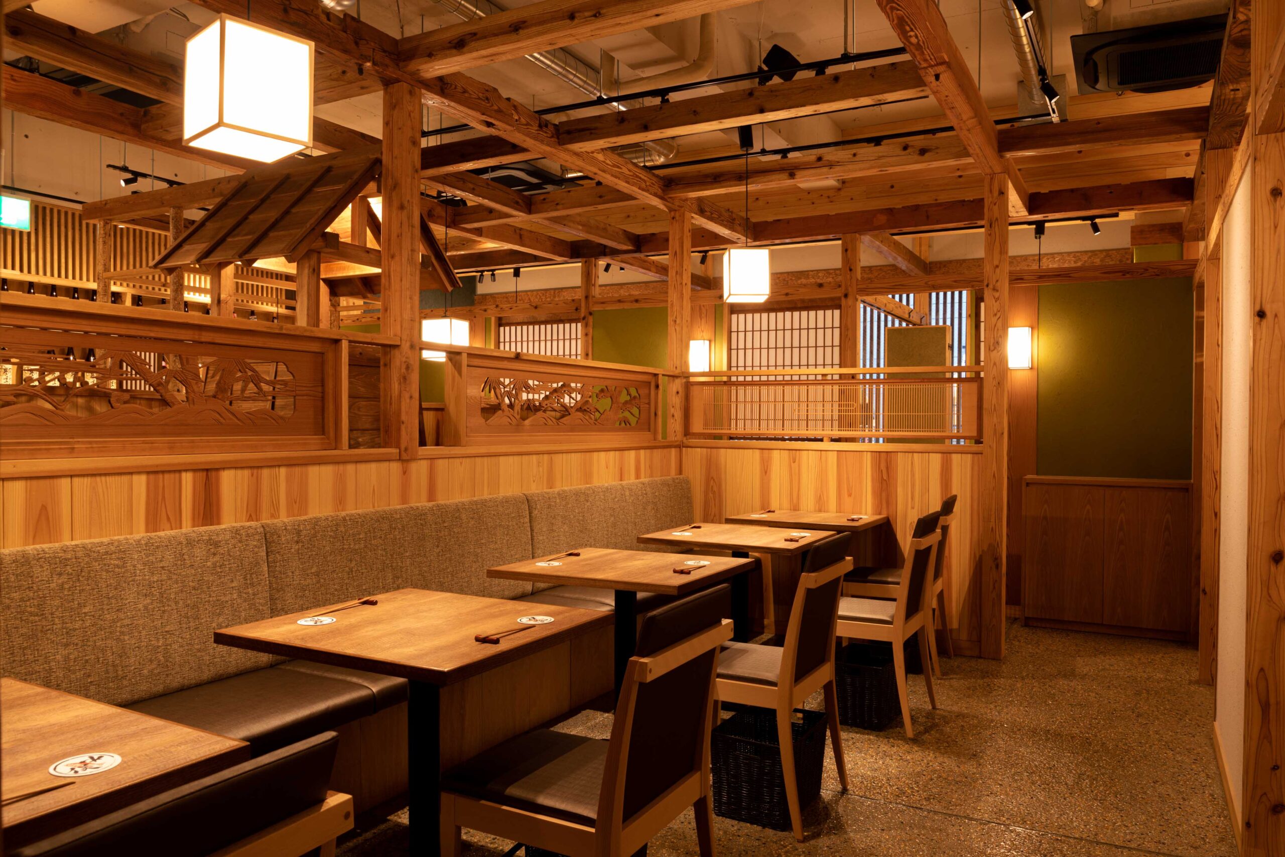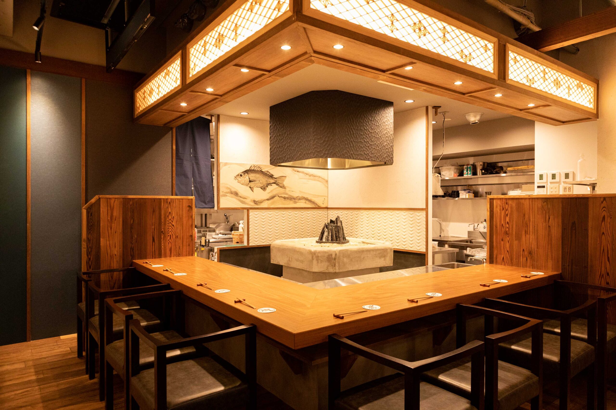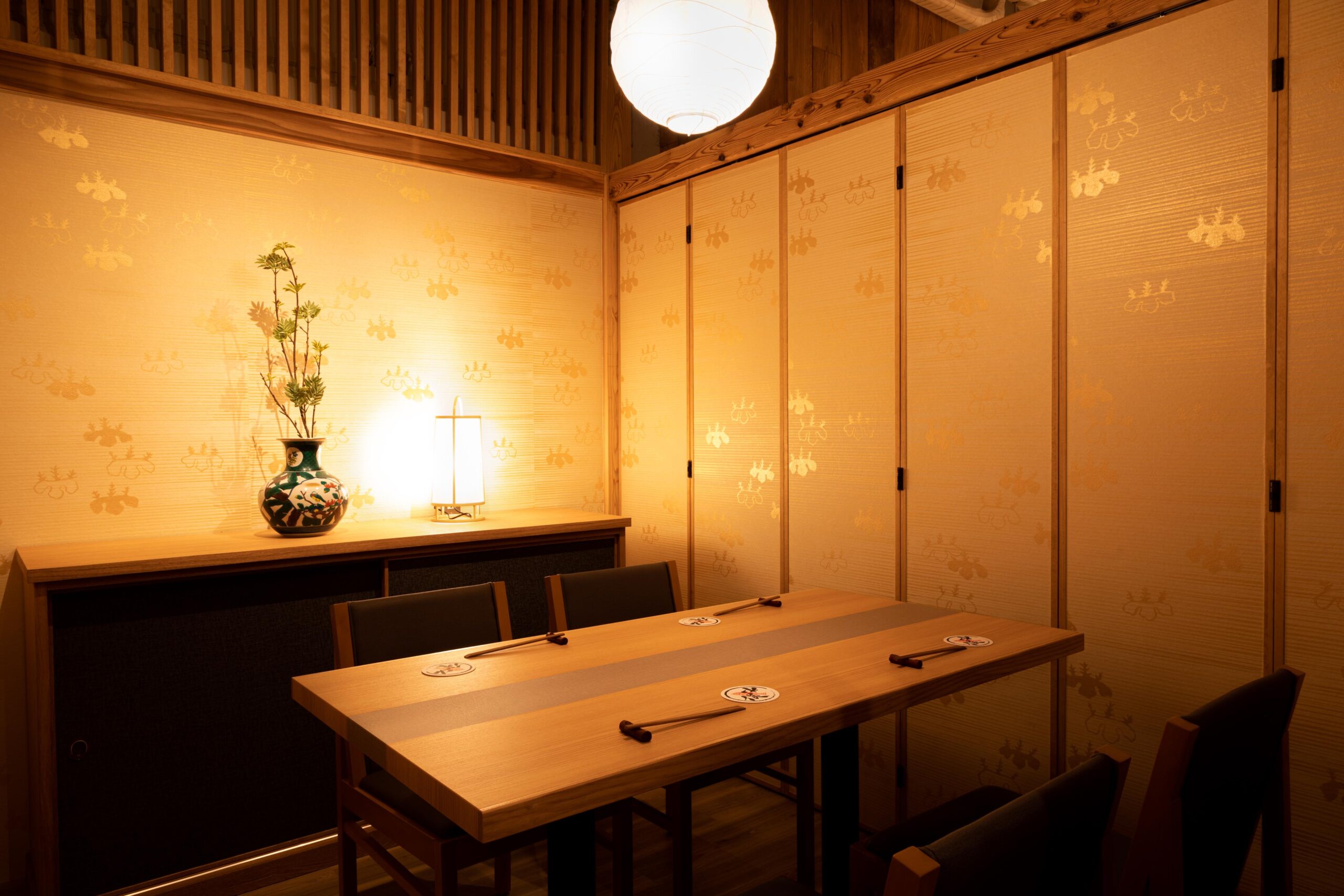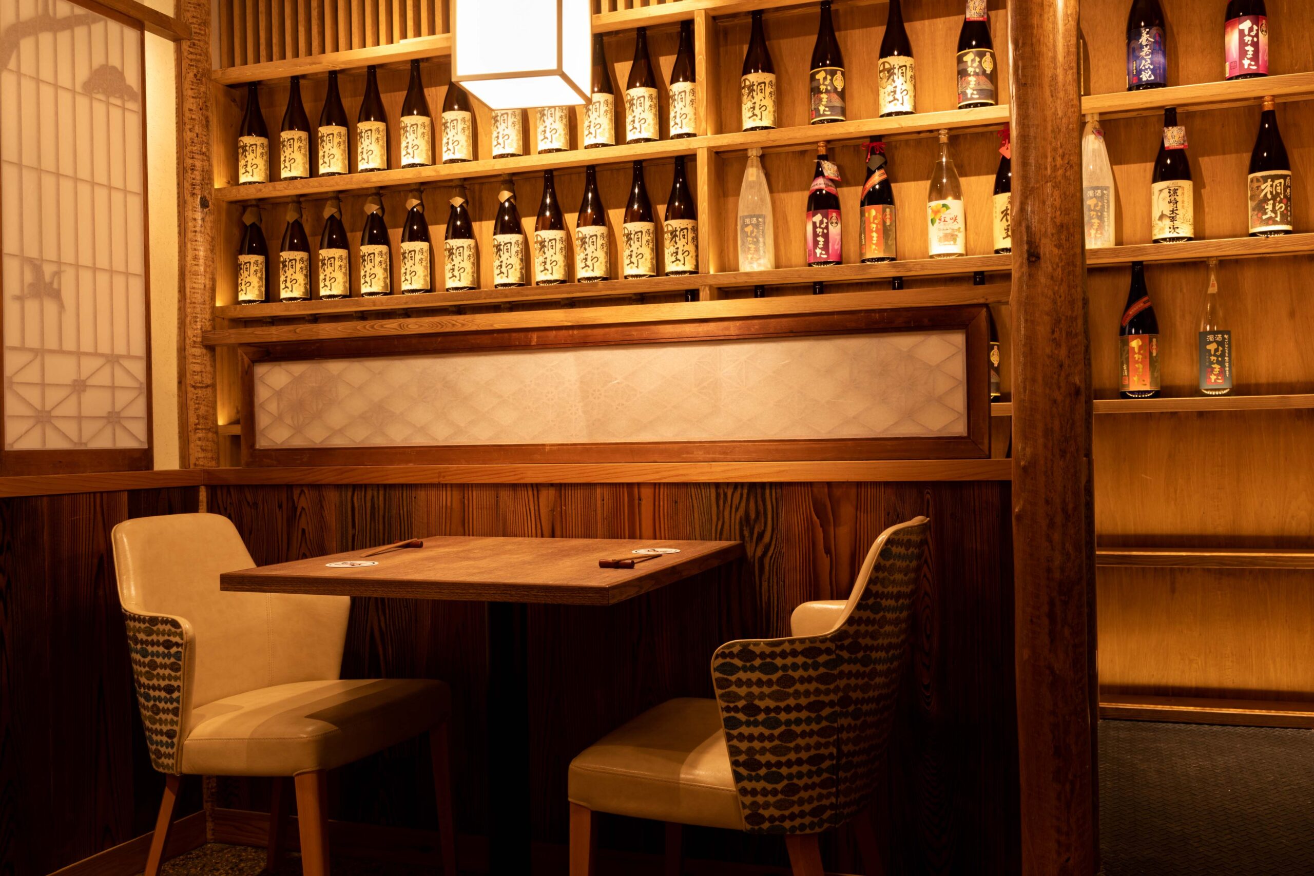 個室席完備、古材を使用した店内は酒蔵風の和モダンな空間となっております。月明かりのような間接照明は特別な夜に最適。デートや接待などには雰囲気抜群の個室席をご利用くださいませ。ご予約やお問い合わせはお気軽に店舗まで。