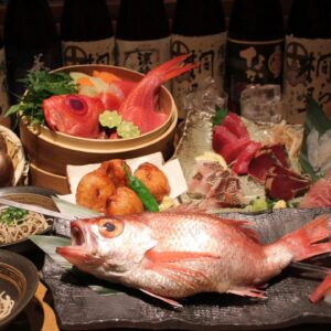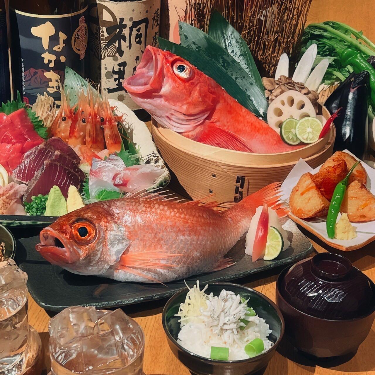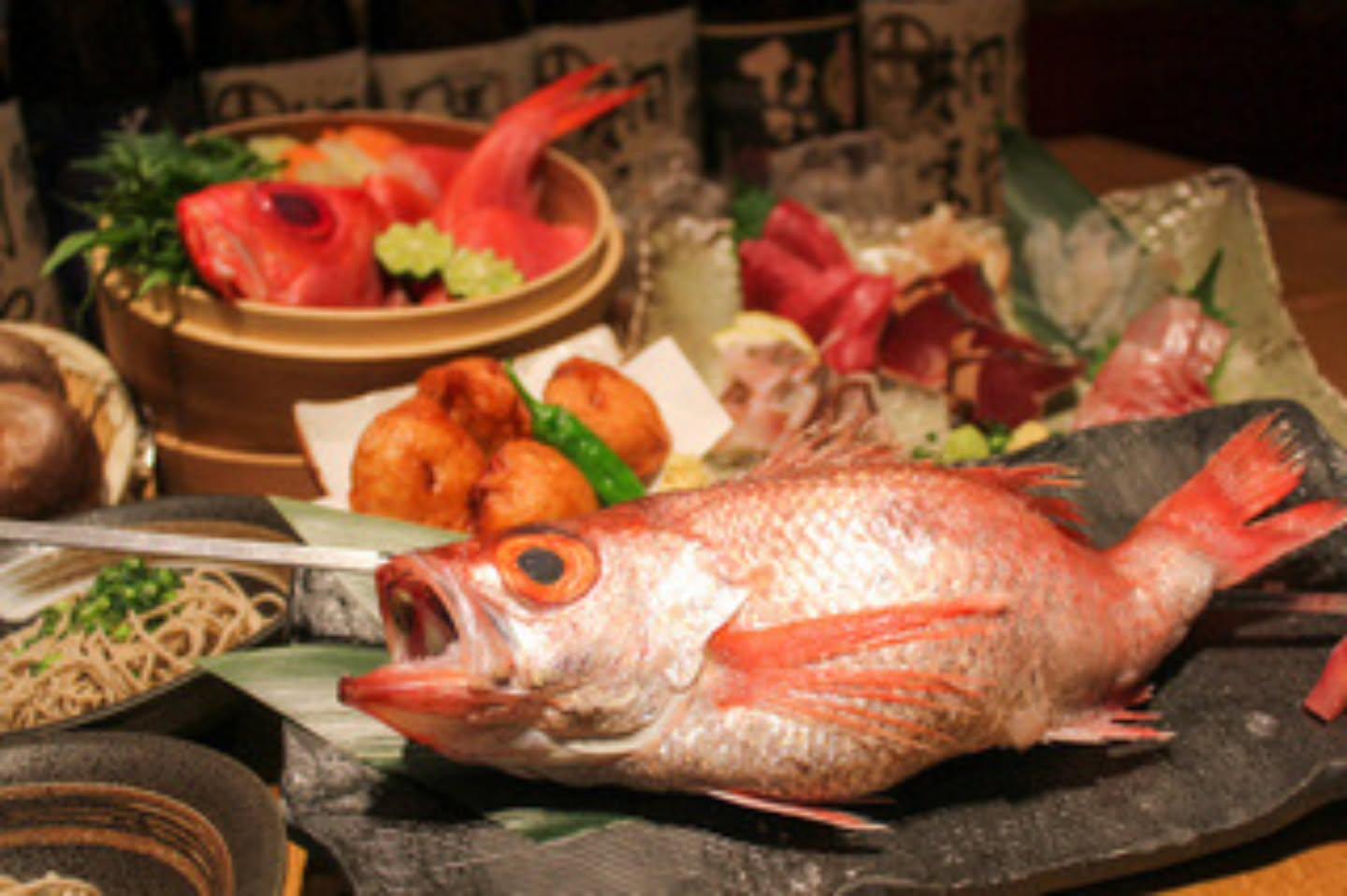 【2時間飲み放題付き】全8品『極上キンキのせいろ蒸しとのどぐろ原始焼きコース』税込9,000円(税抜8,182円)