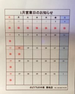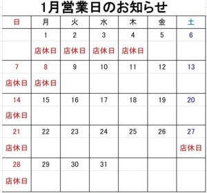 来年2026年1月5日~営業致します!