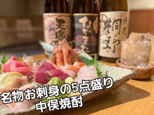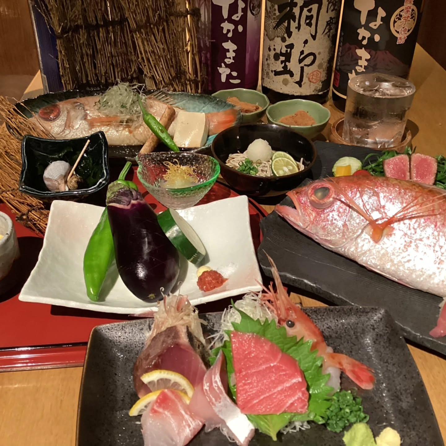 落ち着いた和空間で、名物「のどぐろ原始焼き」と焼酎をお楽しみください。