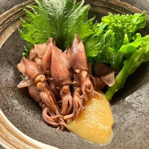 酢味噌和えでご提供いたします!旬の菜の花添え〜焼酎にあいます!