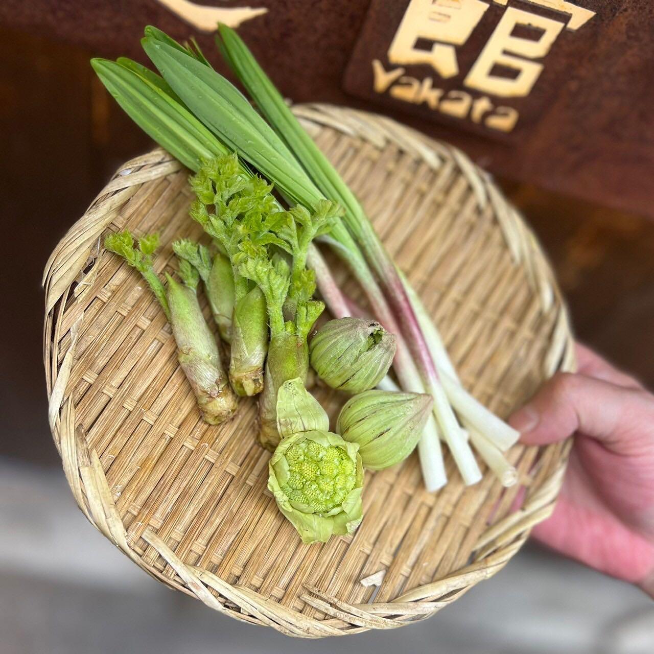 雪うるいとタラの芽、春の山菜を天ぷらでご用意します。