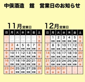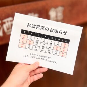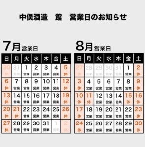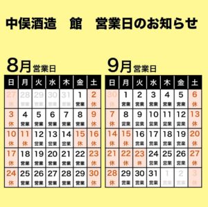 中俣酒造館ではお盆期間の8月12〜14日も営業致します。