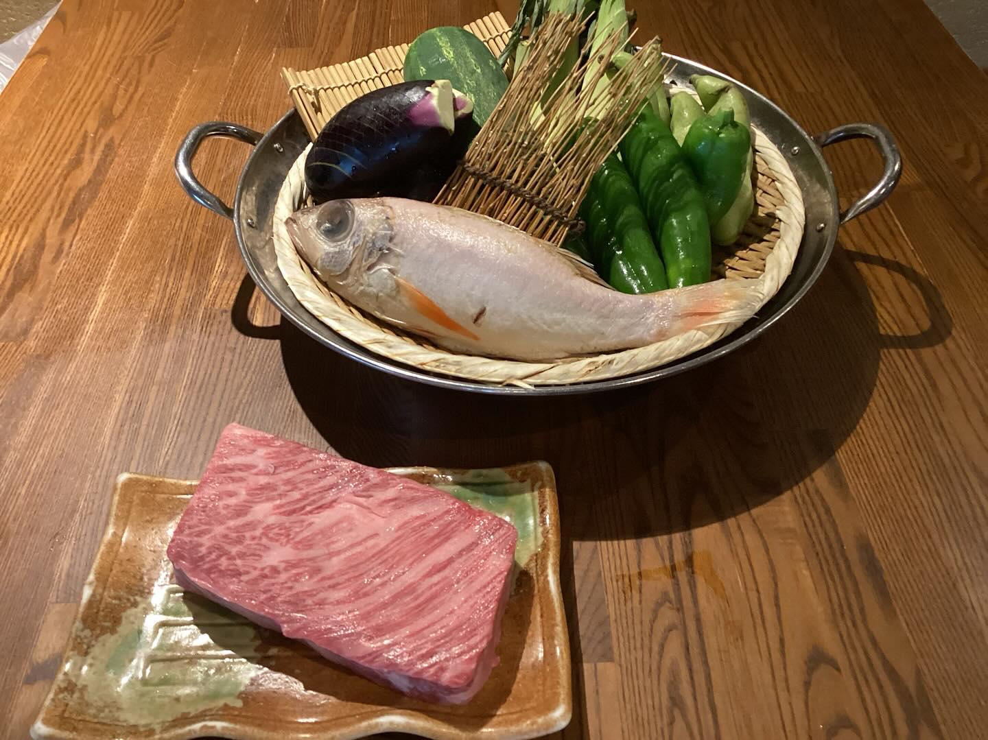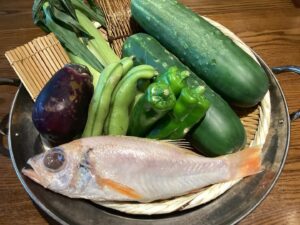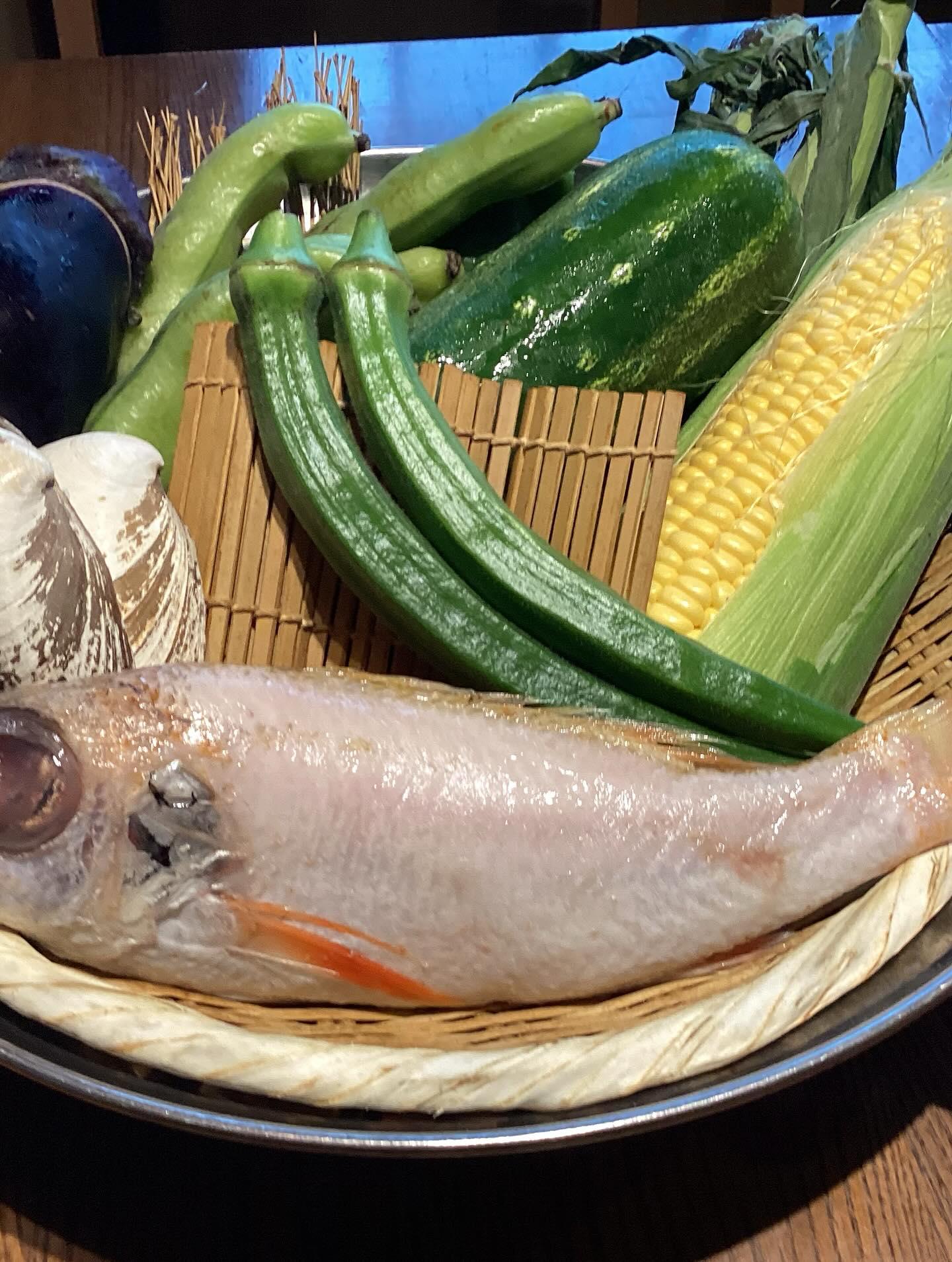 その他夏野菜の炭火焼きや赤烏賊の姿造りなど