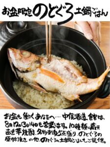 お盆限定でのどぐろを丸ごと使った土鍋ごはんをご提供。